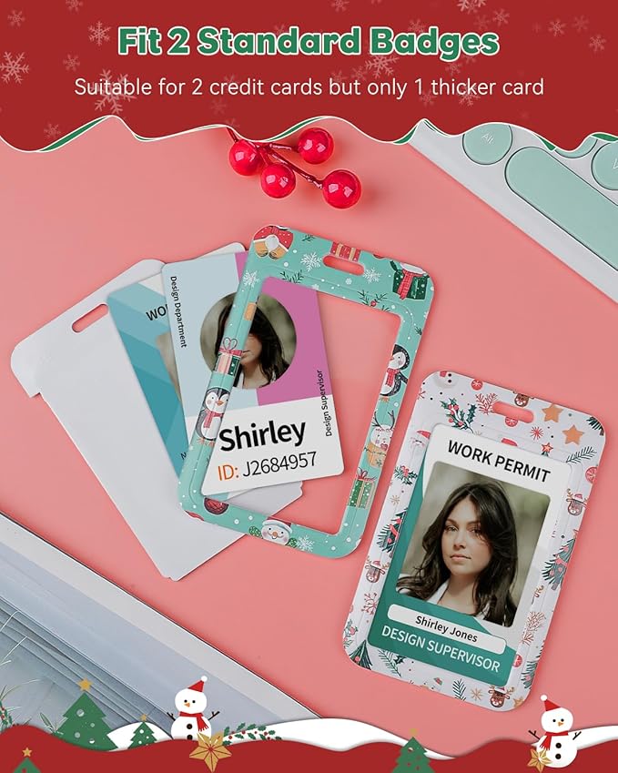Uniclife 2 Pack Christmas Sliding Badge Holder Hard ID Card Holder with Cartoon Santa Claus & Snowman Patterns Vertical Card Protector with Retractable Badge Reel Carabiner & Detachable Lanyard Strap