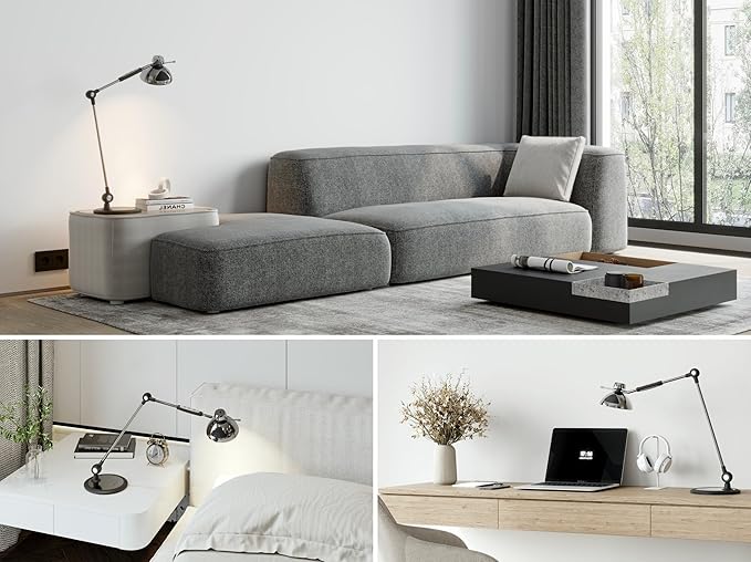 - Durable Metal Construction for Long-Term Professional Use: Solid metal frame with reinforced joints and satin space-grey finish ensures stability and professional aesthetics; weighted swing arm desk lamp base stays secure without clamping; energy-efficient LED lasts 50,000 hours and saves 80% energy; tall desk lamp built for daily professional use in offices, studios, and creative workspaces