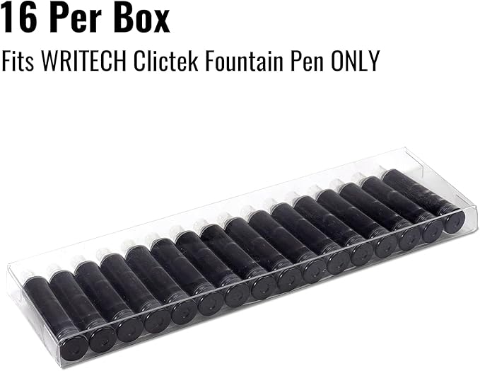 - Large Pack: Comes with a set of 16 black ink cartridges, each designed for long-lasting use with your WRITECH Clictek Fountain Pens.