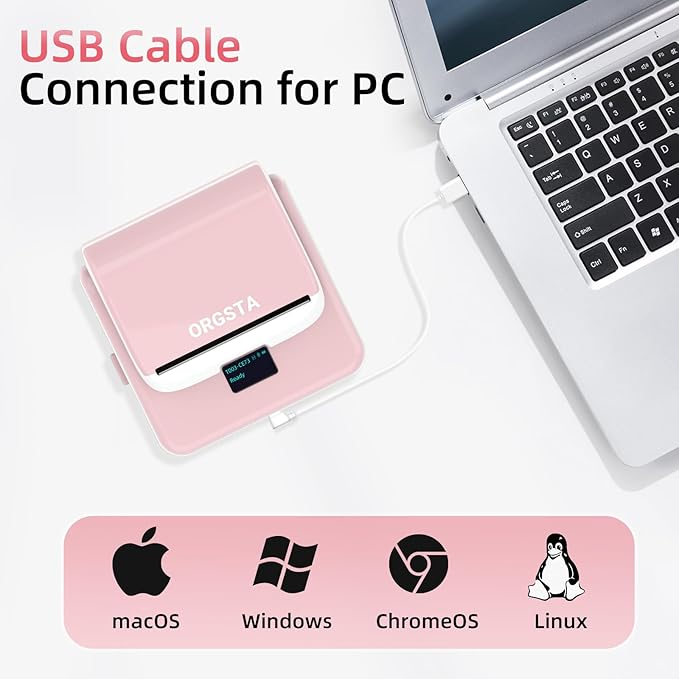 - Effortless Connectivity: ORGSTA T003 Bluetooth label maker is compatible with iOS, Android, and PC; Connect effortlessly to your phone via Bluetooth or to your computer using a USB cable; Label printer includes an easy-to-install driver compatible with Windows, Mac OS, Chrome OS and Linux; For iOS & Android phone, simply download the "4Barcode" app