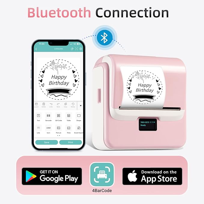 - Powerful App: With Bluetooth connectivity, you can use the free 4Barcode app, which offers over 150 ready-to-use label templates to boost your efficiency; You can also design and save your own templates with access to 80+ fonts and 670+ icons; The app supports a variety of features, including QR codes, barcode labels, tables, materials, timestamps, numbers, text, icons, and more, enabling fully customized label creation