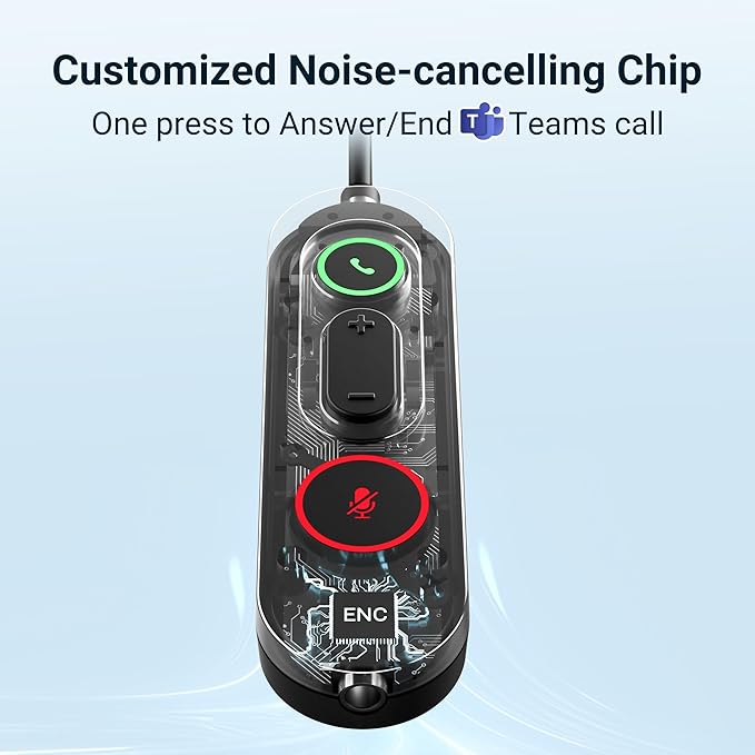 - Ergonomic Fit: Featuring oval earcups and a 15° rotating design, this wired headset adapts to your ears and head shape for a perfect fit. The inverted U-shaped headband ensures stability without squeezing, making it ideal for Zoom and Teams meetings, or remote work.