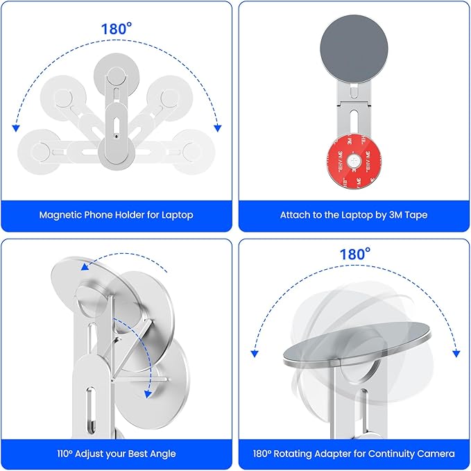 - Light and Compact: Magnetic phone holder for Laptop is made of lightweight aluminum alloy material. It has a small volume that saving space and making it easy to carry anywhere. It is the perfect choice for travel, meetings, analysis, business trips and so on.