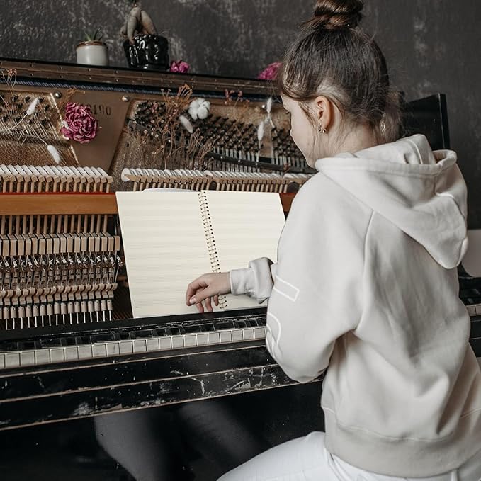 - Coil binding music notebook is more convenient to use; Double-sided writing without ink bleeding; Beige blank sheet for eye protection;