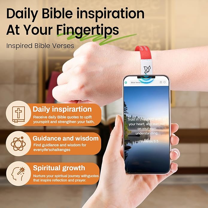 - INNOVATIVE DESIGN: Daily bible verse bracelet is made of high quality polyester elastic material, the bracelet can be used to access Bible verses anytime and anywhere via NFC, the elastic process can be adjusted to fit comfortably, it is waterproof, sweatproof and washable