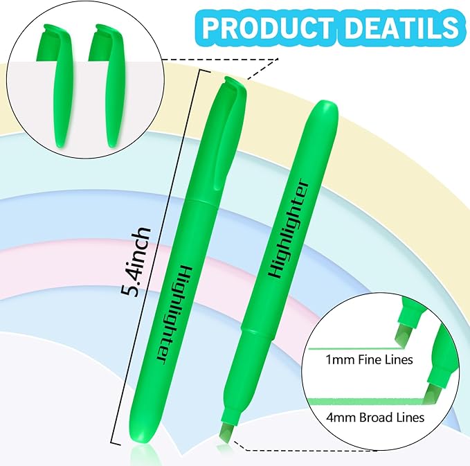 - Vibrant Fade-Resistant Pigments – Long-lasting, non-bleeding green highlights ensure legibility on textbooks, planners, sticky notes, and printer paper.