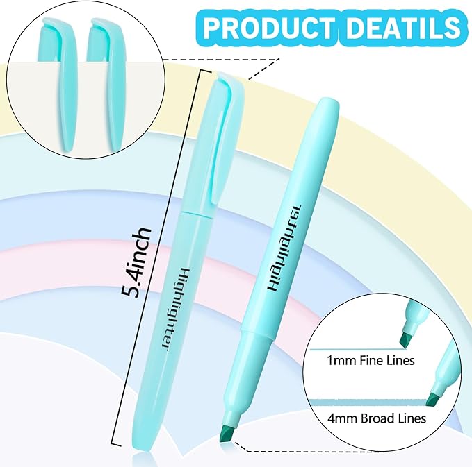 - Long Lasting & No Bleeding: The highlighters are designed to be used on a wide range of paper, such as newspapers, test papers, sticky note, notes, calendars, etc. Kid-safe, non-toxic, and won't penetrate typical paper. High-quality refills make coloring smoother and easier, and closing the pen cap after each use will make them more durable, more long lasting. Remember to be sure after use keep the pen cap closed to prevent the ink from drying out.