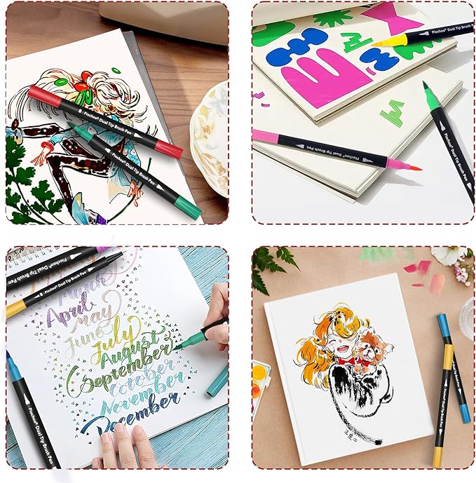 - Rich In Color:Both the fine tip and the brush tip of our marker set have 34 vivid colors. Let your artistry grow and make you life colorful with these water coloring pens!