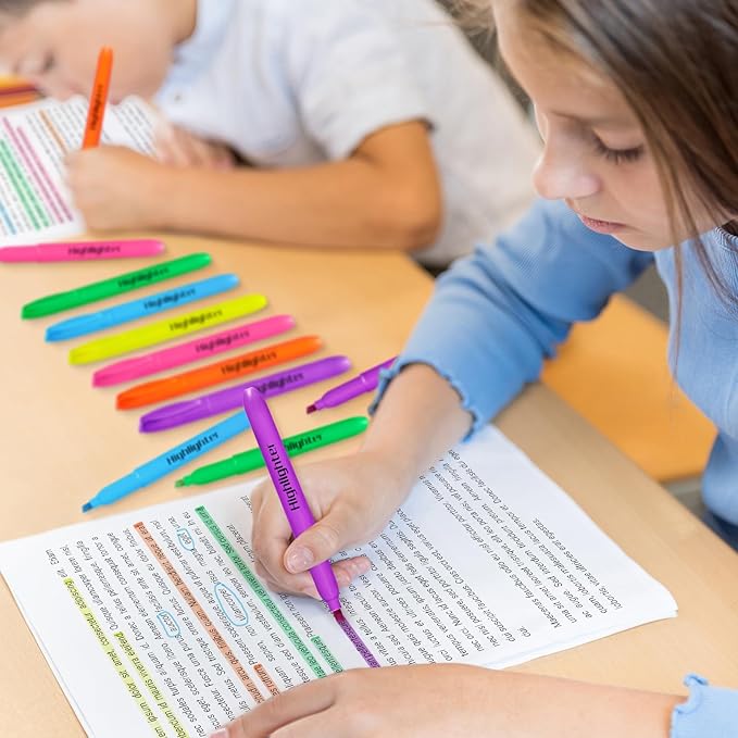 - No Bleed & Quick-Drying Highlighter: The highlighter pens use durable, quick-drying ink, allowing highlighted marks to be clearly visible without worrying about the ink staining your hands and books. Even when highlighting on one side of the page, the opposite side remains fully legible, eliminating the concern of ink seepage that could impair readability.