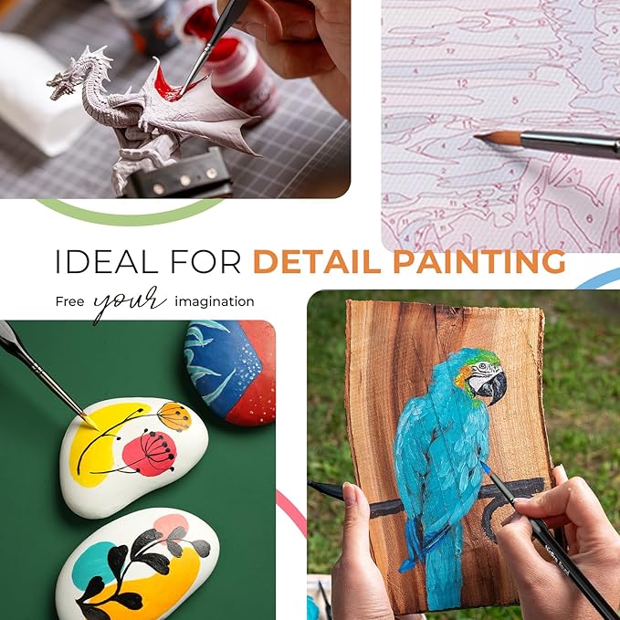 - Ideal For Miniature Painting - Versatile for All Mediums. Whether you're working on miniature painting, nail art, scale models, craft, rock painting, dollhouses, or face painting, this set handles it all. These paint by number brushes work beautifully with acrylic, watercolor, oil, and gouache, making them the perfect match for hobbyists, students, and pros alike