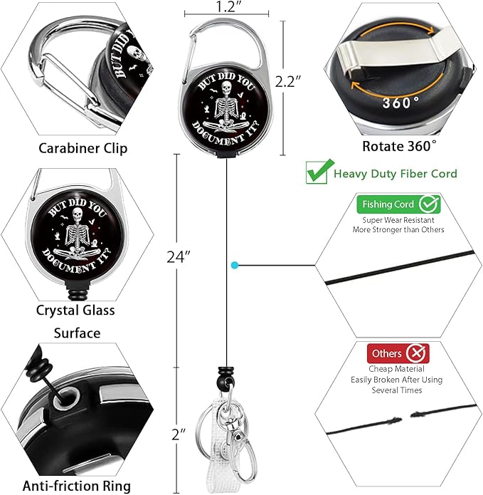 - 360 Degrees Swivel: The retractable badge reel is made of premium plastic and steel, sturdy and light-weight. It is easy to clip on to a belt, backpack, pocket or anywhere you like, with 360 rotating carabiner clip. You can attach your keys, student cards, or ID cards to the key holder easily and conveniently. Great for nurses, doctors, maintenance, office staff, business people, teachers, students, factory workers, drivers, etc