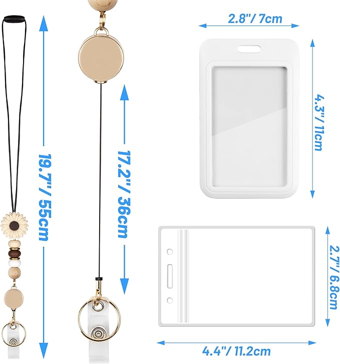 - 9-in-3 Badge Lanyard Set: This set includes three retractable lanyards for ID badges (19.7 in / 55 cm), three PVC ID holders (4.4 x 2.7 in / 11.2 x 6.8 cm), and three colorful ABS badge holders (4.3 x 2.8 in / 11 x 7 cm), offering a convenient solution for carrying your ID badge or keys