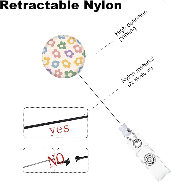 Flower Badge Reels Holder Retractable with ID Clip for Nurse Name Tag Card Nursing for Doctor Teacher Student Employee Office Medical Work 3