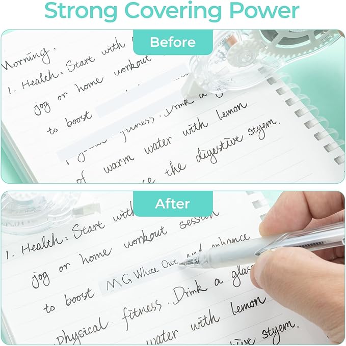 - Smooth & Seamless Correction: Precision roller glides smoothly, covering mistakes evenly without residue. Works on notebooks, exam papers, and different pens.