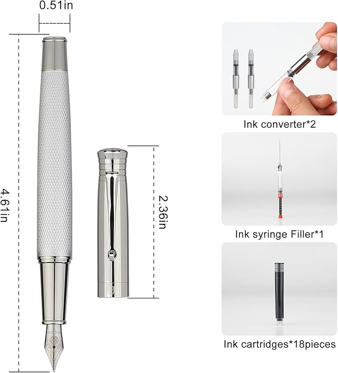 - Easy Ink Refill - The syringe filler ensures clean, efficient, and cost-effective refills for both cartridges and bottled ink, making this a practical and elegant pen.
