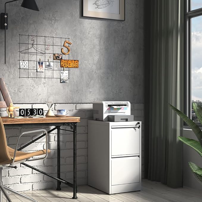 - 【High Security】:This steel cabinet has one lock equipped with 2 keys securing all your files,you can lock all the drawers at the same time,with an anti-tilting mechanism, when one drawer of the narrow file cabinet is opened, the interlocking system prevents the other drawer from opening