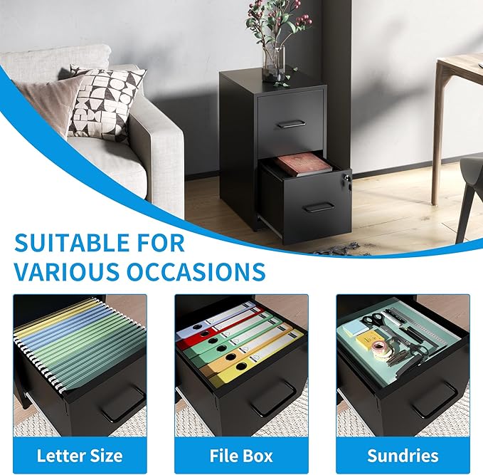 - 【Safety & Security】 One lock with 2 keys secures all 2 drawers, this steel locking file cabinet ensures the safety of your confidential documents, offering peace of mind for both home and office use.