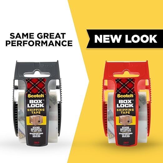 Scotch Box Lock Packaging Tape with Dispenser, 1.88 inch x 800 inch (22.2 yd), 2 Rolls, Clear Heavy Duty Packing/Shipping Tape, Extreme Grip – Sticks Instantly to Any Box for Secure Seal
