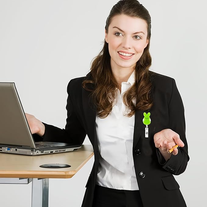 Easter Bunny Badge Reels Retractable ID Name Badge Holder Green Rabbit Cute Badge Reels Acrylic Clips Easter Party Gifts for Nurse Doctor Teacher Student Office Supplies