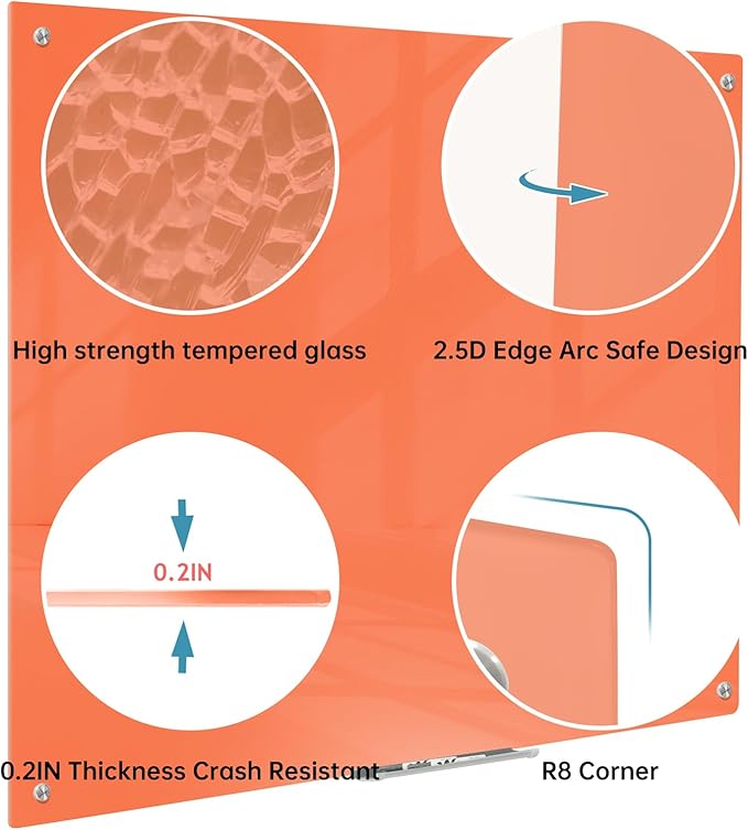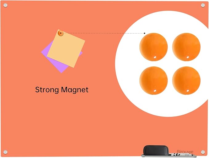 Magnetic Glass Dry Erase Board - White Board 48 x 36 Inch Wall Mounted Glass Whiteboard, Large Frameless Glass White Board for Wall Office, Home & School, Orange