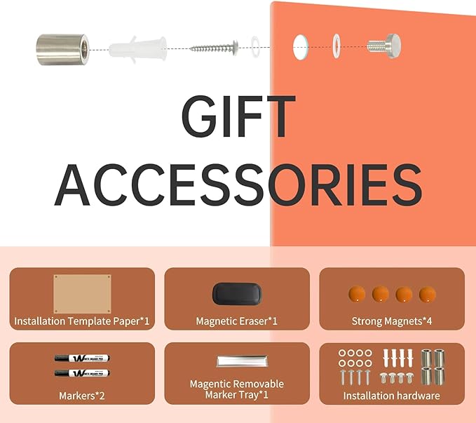 - Easy to Install: Glass Whiteboard Magnetic Dry Erase White Board is easy to install. Through the assembly instructions provided by us, you can easily install the whiteboard vertically or horizontally on the wall.