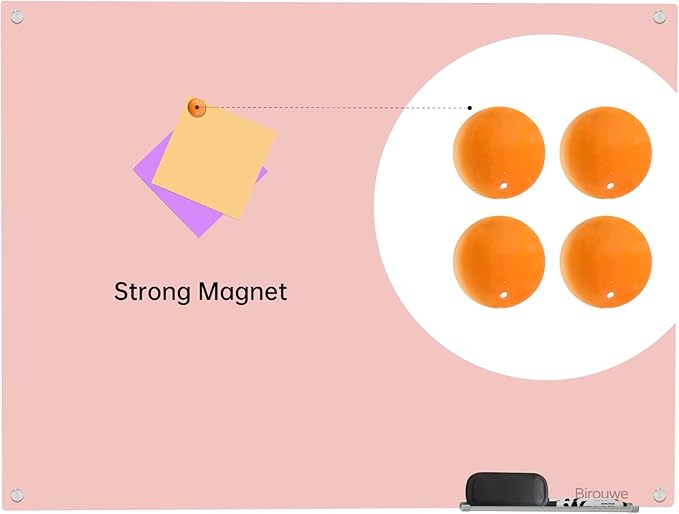 Magnetic Glass Dry Erase Board - White Board 48 x 36 Inch Wall Mounted Glass Whiteboard, Large Frameless Glass White Board for Wall Office, Home & School, Pink