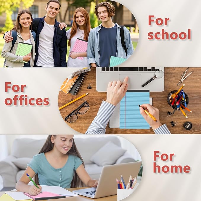 - 【Widely Used】You can divide the college ruled paper into different scenes according to its color.Legal pads 5x8 could have been used for class notes,meeting minutes,shopping lists,important reminders,recipes, memos,to-do lists,etc.Perfect for jotting down any of your moments, you can also draw with these colored lined paper.These standard pocket notepad are a versatile and valuable option.