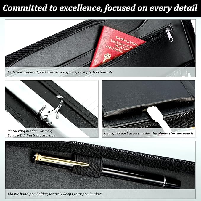 - EFFORTLESS ORGANIZATION WITH 3-RING BINDER: Stay organized with the built-in 3-ring binder, pen holder, phone pocket, and card slots. This leather Padfolio is designed for efficient file management and easy access during meetings or business trips