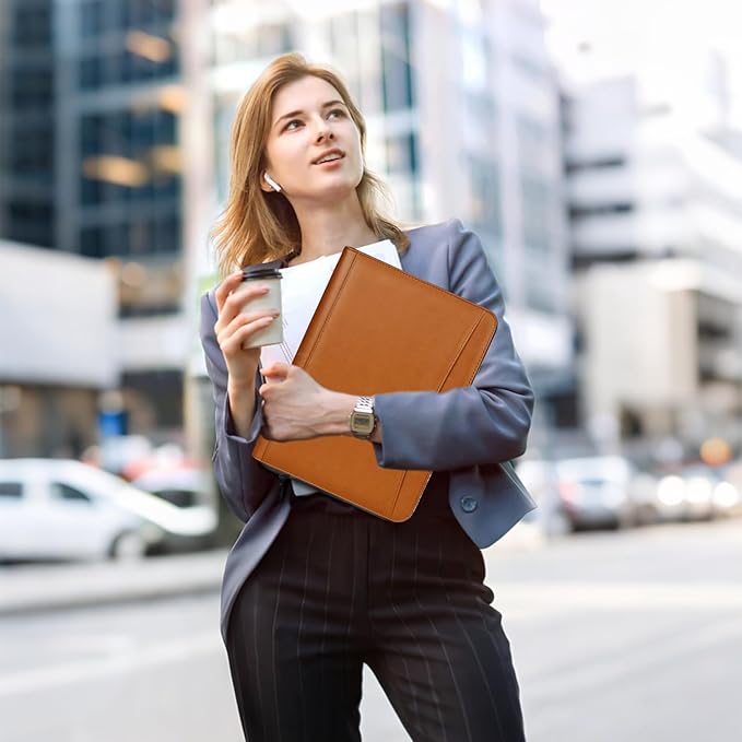 - STURDY AND WATER-RESISTANT VEGAN LEATHER: Crafted from premium vegan leather, this portfolio binder is both sturdy and water-resistant. Its elegant design makes it a reliable companion for office work, travel, or daily organization