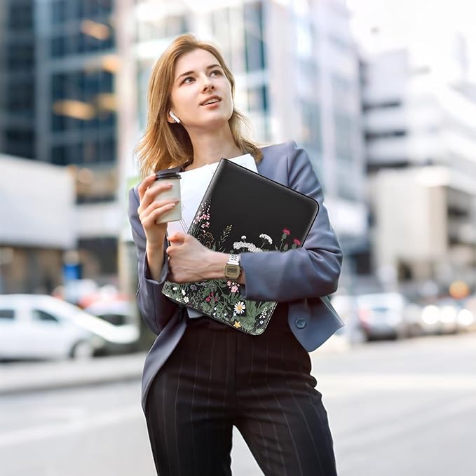 Leathario Portfolio Binder, Includes 5 Folder Index Dividers and 3 Notepads, 3-Ring Folder Organizer, Padfolio with Zipper, Vegan Leather Tablet Sleeve, Business Office Conference Clipboards