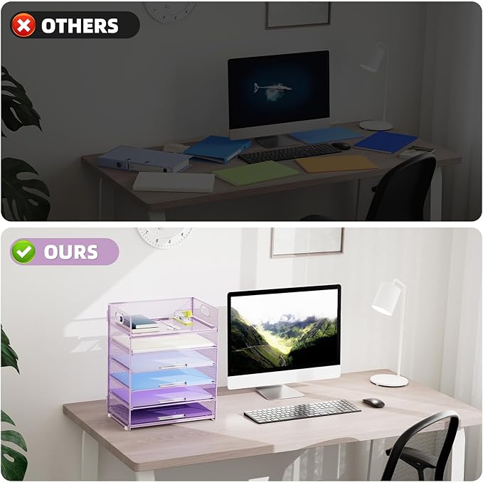 Marbrasse 2 Pack Desk Organizer with Handle, 6 Tier Paper Letter Tray, Mesh Desk File Organizer for Office, School and Home - Purple