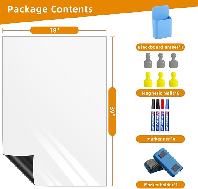 Magnetic Whiteboard Contact Paper, 18" x 39" Stick on Magnetic Dry Erase White Board Sticker on Wall, Easy to Write for Kids Drawing, School, Office, Kitchen Fridge