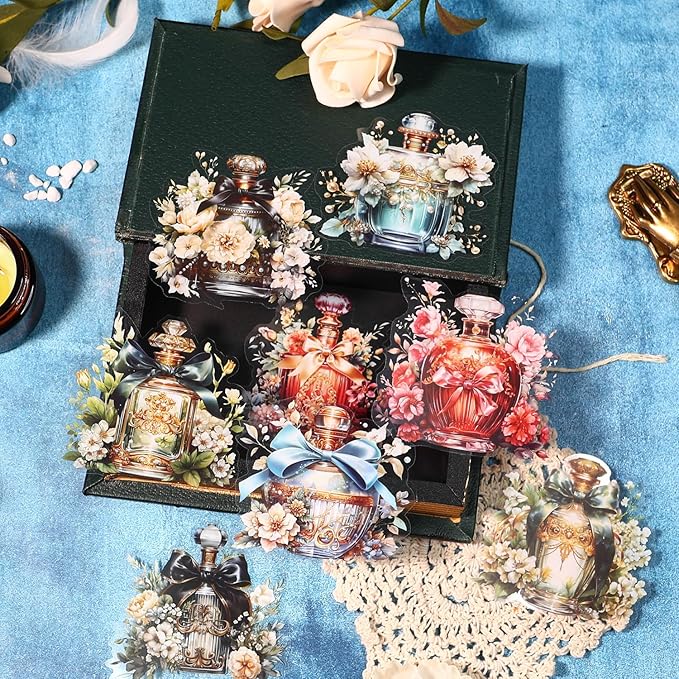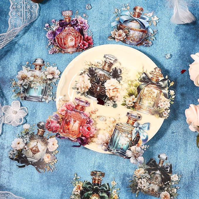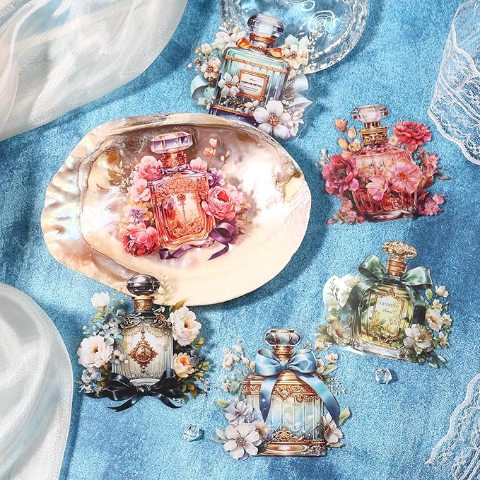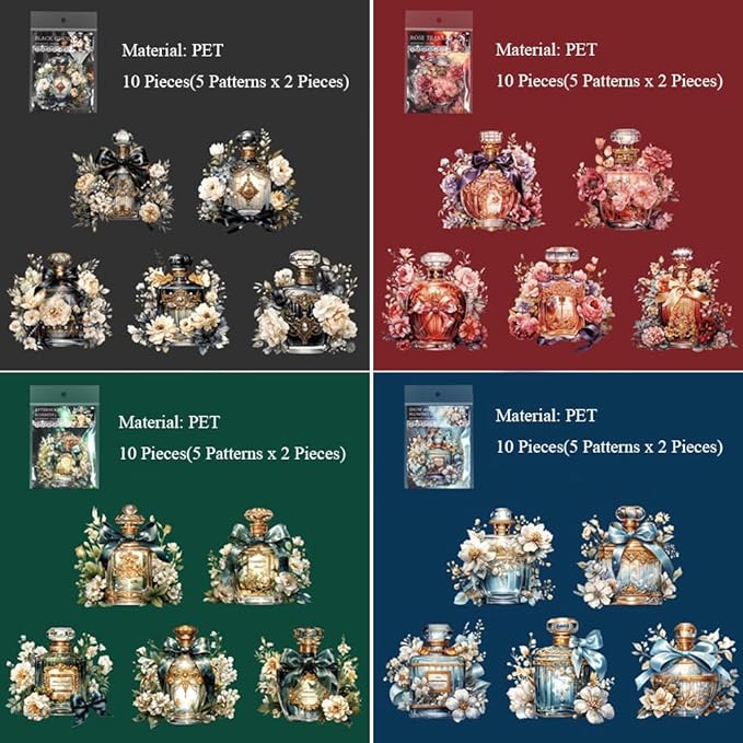 MAFELOE PET Scrapbook Stickers, 4 Packs, 10 Pieces Each, Aesthetic Deco Supplies for Junk Bullet Journaling Card Making Daily Planner-Bottle&Flower Series (TP-WYMH-08)