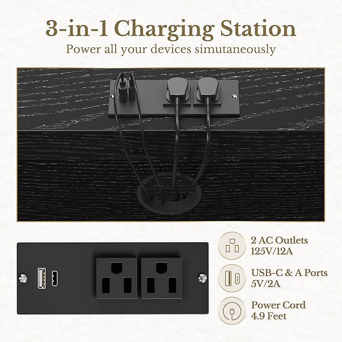 - Lateral File Cabinet with Charging Station: This cabinet features two power outlets, one USB port, and one Type-C charging port, allowing you to quickly charge your printer, scanner, smartphone, tablet, and other office electronics. It offers great convenience for your work and daily life.