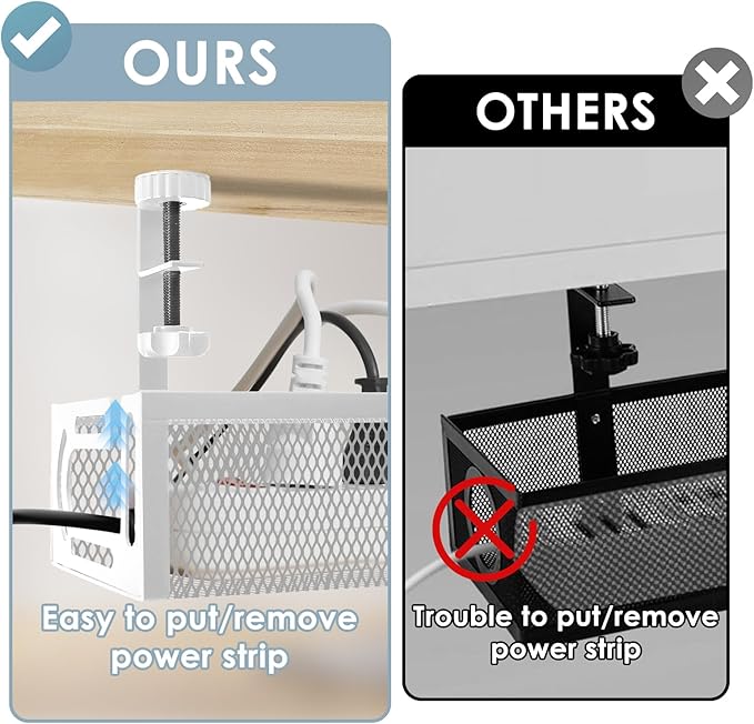 - 【No More Mess】Keep the cables and sockets tidily stored to maintain a clean and organized desk and floor. The desk wire management keeps all cables and sockets away from your kids, no more worry about tripping.