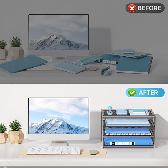 - Multi-Purpose Desktop Organizer: Perfect for offices, homes, or schools—neatly store bills, mail, catalogs, notebooks, or even crafting supplies. Slim profile fits tight spaces next to printers or monitor