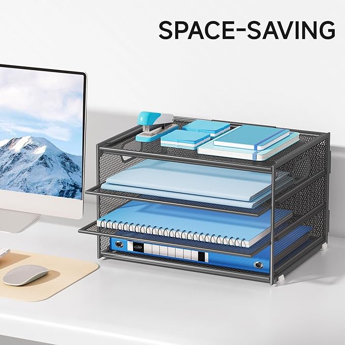 - 3-Tier Desk Organizer with Handle, Space-Saving Design – Maximize your desk space with Lavatino’s vertical stacking design. Fits letter/A4 papers, folders, and magazines in 3 separate tiers, keeping documents visible & accessible without clutter.Built-in Handle – Makes it portable for convenient relocation (Dimensions: 12.6" x 9.1" x 7.6")