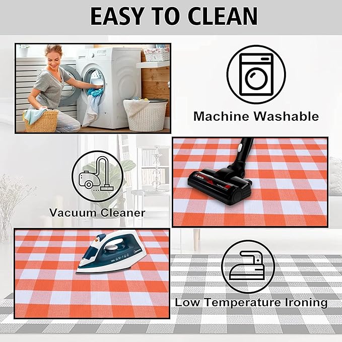- Crafted from woven cotton, the orange and white plaid rug is not only stylish but also durable and strong, making it suitable for outdoor areas, foyers, and other high-traffic zones