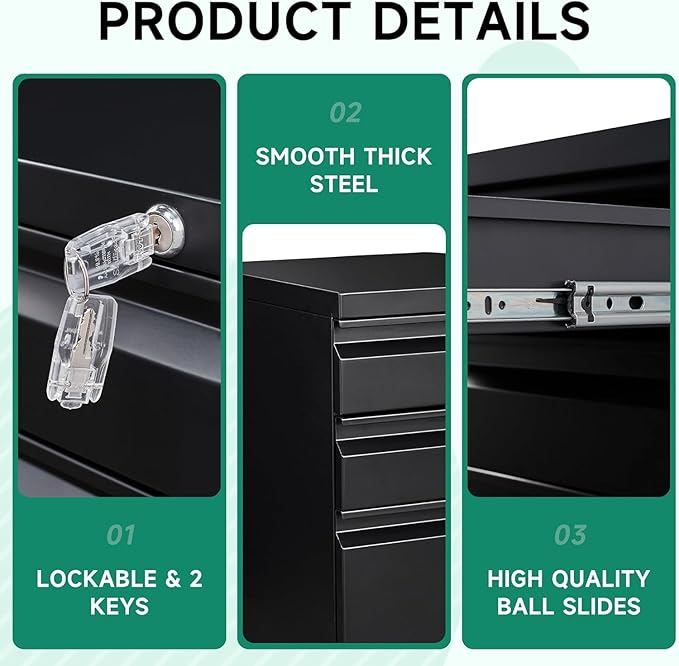 - 【Sturdy and Durable】This file cabinet is made of high-quality steel with a powder-coated finish, ensuring durability and long-lasting use. The anti-tipping mechanism ensures stability even when fully loaded.