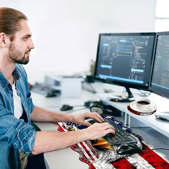 Large Mouse Pad and Keyboard Wrist Rest, Desk Pad for Keyboard and Mouse, 4-in-1 Large Gaming Mouse Pad with Wrist Support, Desk Mat for Home Office Study Game-Bald Eagle American Flag