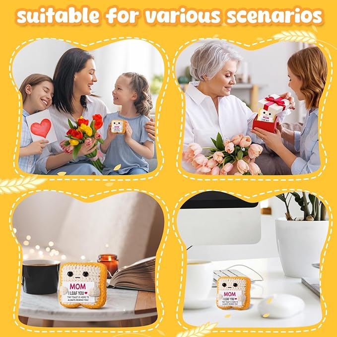 - Perfect Gift Idea for Mom from Daughter or Son: These crochet toasts are compact and fit perfectly in pockets or backpacks. Small yet full of charm, this tiny plush fits perfectly on desks, nightstands, bookshelves, or car dashboards, adding a heartwarming touch to any space.