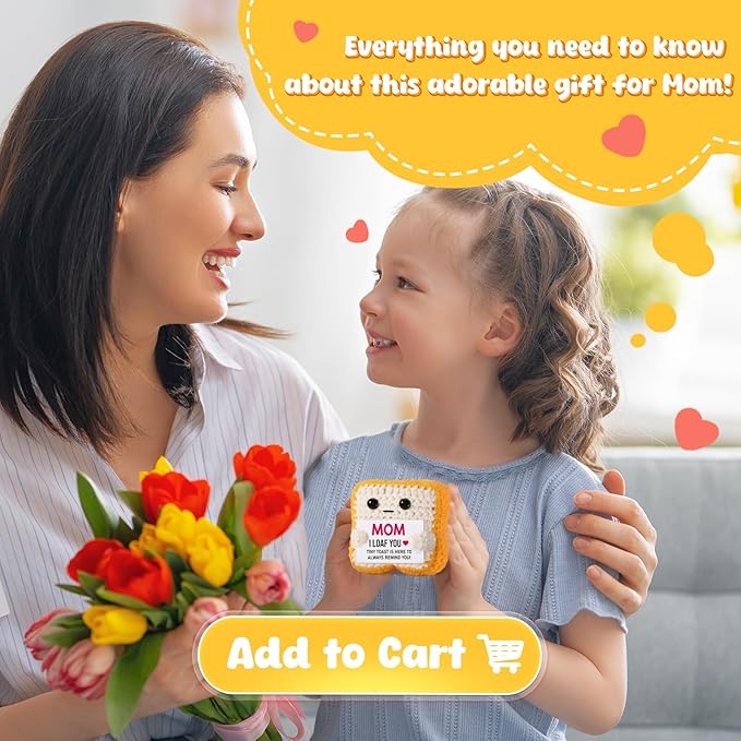 - A Fun & Thoughtful Reminder: A delightful pocket companion that brings smiles and spreads positive vibes wherever your mom goes! Every time Mom sees this cute toast plush, she’ll be reminded of how much she is loved. A delightful sentimental gift that spreads positivity and happiness!