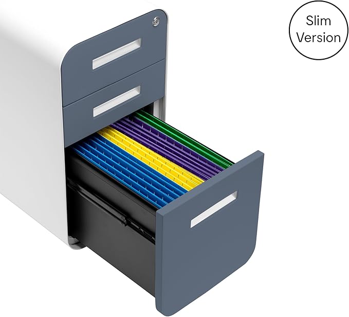 Laura Davidson Furniture Stockpile Slim 3-Drawer Mobile File Cabinet with Lock - Under Desk Metal Filing Cabinet, Legal/Letter File Folders, Wheels & Stationary Feet, Assembled, Coastal Blue Faceplate