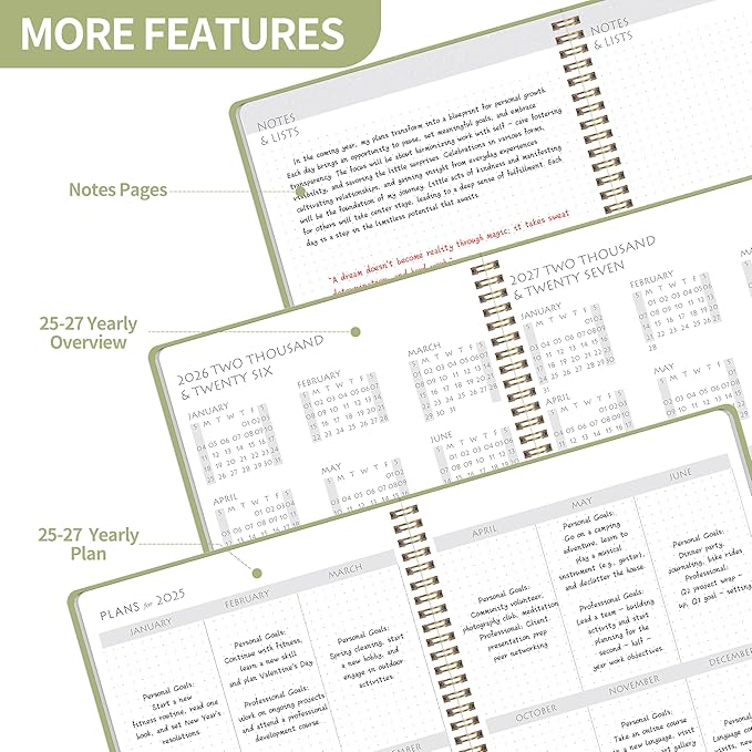 - Monthly Planner 2025-2027: Elevate your planning game with our meticulously crafted 2025-2027 Monthly Planner. This stylish and functional monthly planner spans 24 months, from 2025 to 2027, ensuring you stay organized and on top of your schedule for an extended period.