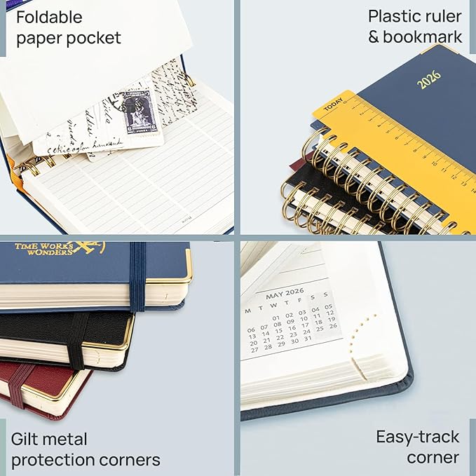 - EXTRA PAGES - This 2026 daily planner also contains Yearly Overview" Page + Holiday & Calendar" Page + Contact Pages + Password Page + Dotted Notes Pages for jotting down your ideas, thoughts or any other happy things in detail.
