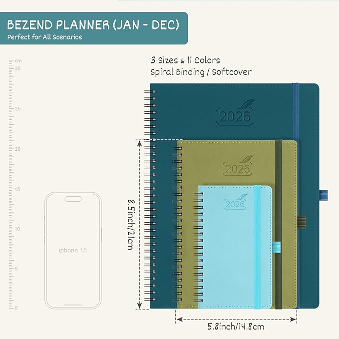 - DURABLE & SUSTAINABLE: The 100 gsm white paper, PU Vegan leather softcover and strong twin-wire spiral bound would save you from damage worries. More importantly, our BEZEND planners are all crafted using well-managed materials to maintain a sustainable office home school supplies