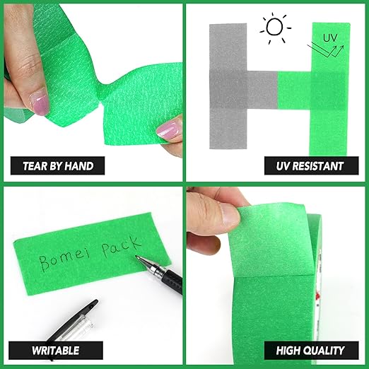 - Clean and Sharp Paint Lines - BOMEI PACK Green Painter’s Tape will help you create a perfect edge in all types of painting, trimming, edging, masking and protective applications. Great balance of strength, flexibility, durability, and removability. Contains crepe paper backing to prevent paint bleed, yet removes cleanly without damage. You’ll always get a perfect edge when you use it to create a border for painting or caulking jobs