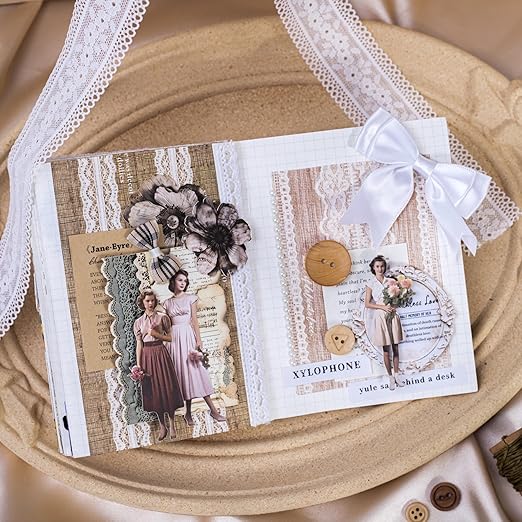 - Elegant Lace Designs: 6 rolls of 1.57in wide washi tape, each featuring a unique lace fabric pattern, bring a vintage and romantic touch to your scrapbooks, journals, and crafts