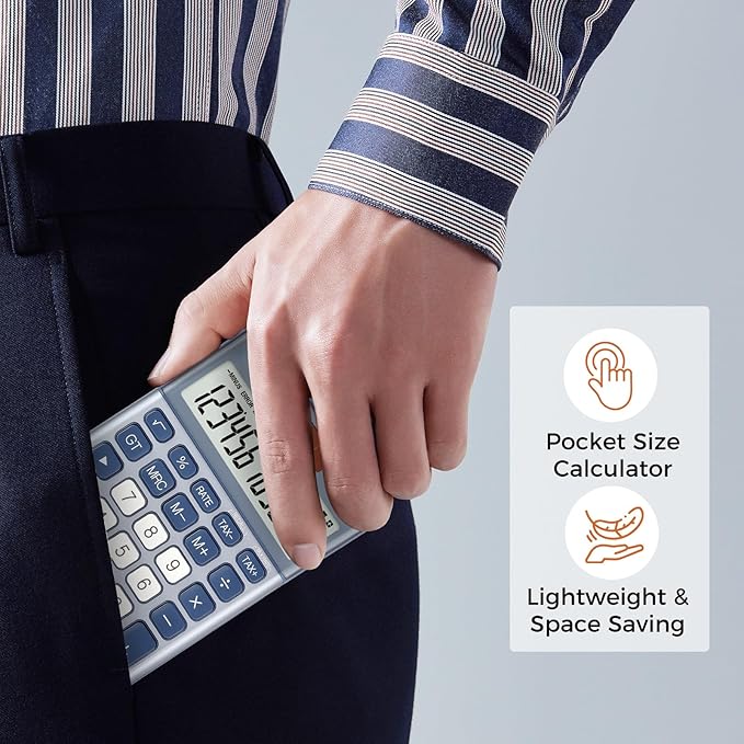 - 【Durable Construction and Portability】 Made of high-grade metal panel and durable ABS buttons, this 12-digit calculator is lightweight yet durable, capable of withstanding multiple impacts from desktop height. The large, clear LCD Display offers crisp, easy-to-read numbers, minimizing eye strain and ensuring professional-grade performance whether at home, in the office, or while traveling.