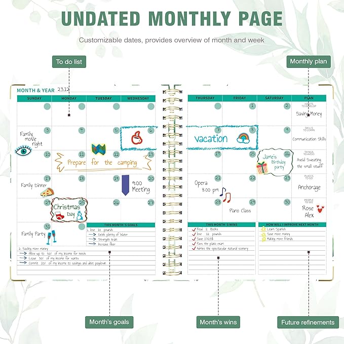 - Boost Your Productivity: Additional accessories included: instructions, bookmarks, stickers, and labels. Whether for work, study, or personal use, undated planner is the perfect tool for achieving your daily priorities and taking control of your schedule.
